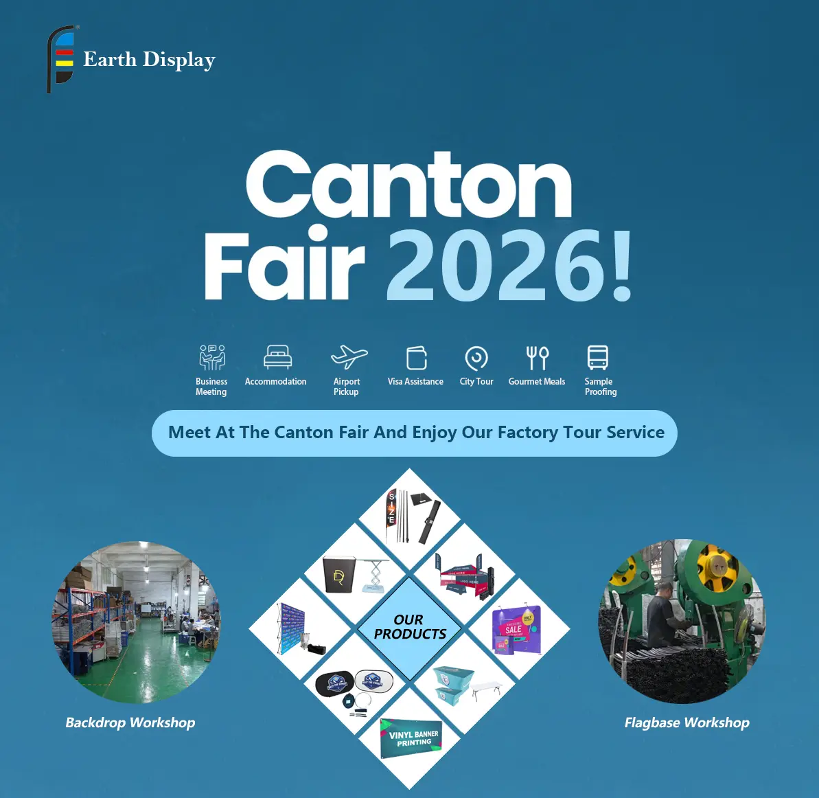 Ближи се Кантонски сајам 2026, а ми у Еартх Дисплаи-у се заиста надамо да ћемо вас тамо видети. Већ више од десет година правимо пернате заставице, искачуће позадине, базе застава, прилагођене винил банере - у суштини све за изложбе и рекламе. Овог пута, уместо да само разговарамо на мрежи, желимо да вам покажемо шта радимо, лицем у лице.